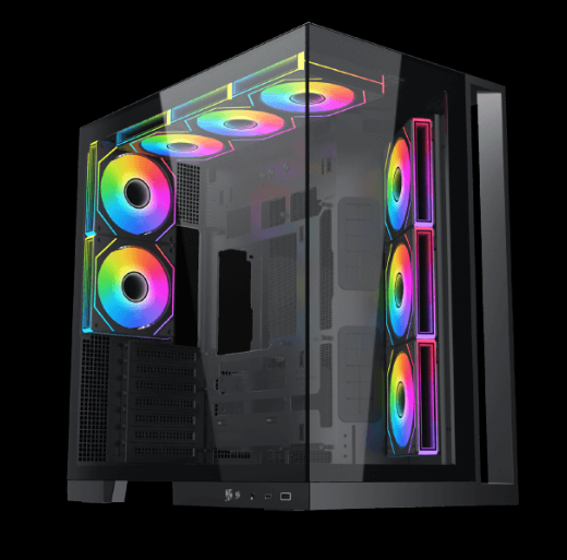 內建 8 個 ARGB 風扇+三個 360 mm 水冷支援位置(上/側/底皆可)。